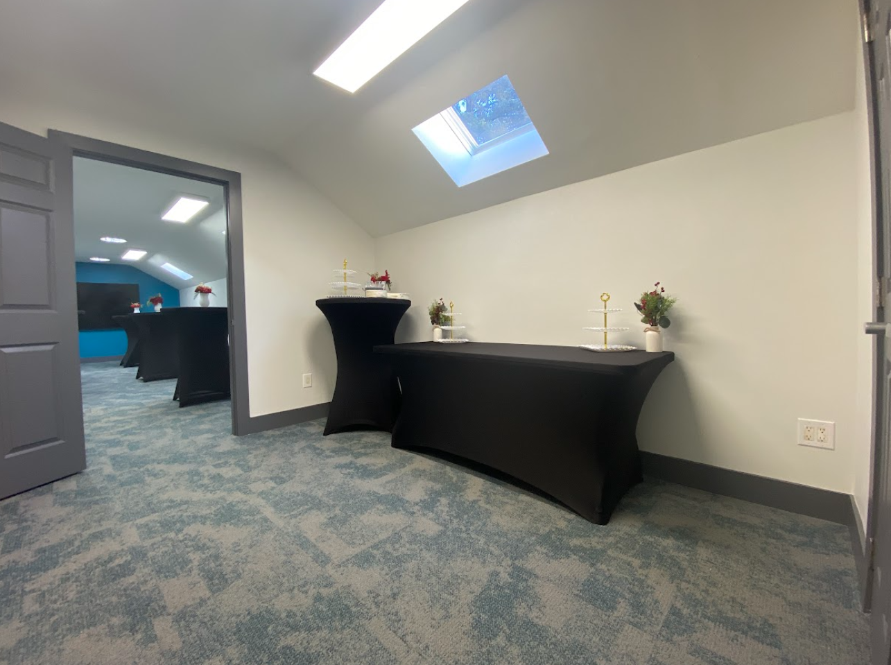 Discover the perfect canvas for your next event and/or meeting in our versatile and inviting event space, accommodating up to 40 guests. This dynamic setting creates an inspiring ambiance for a wide range of occasions. Whether you're hosting a social gathering, workshop, or classroom-style event, our flexible setup options, including high tables for mingling or comfortable seating for focused sessions, cater to your unique vision. Elevate your event with our optional catering services, along with complimentary coffee and tea to keep your guests energized and engaged. Transform your gatherings into memorable experiences in our spacious and beautifully lit event and meetings space.