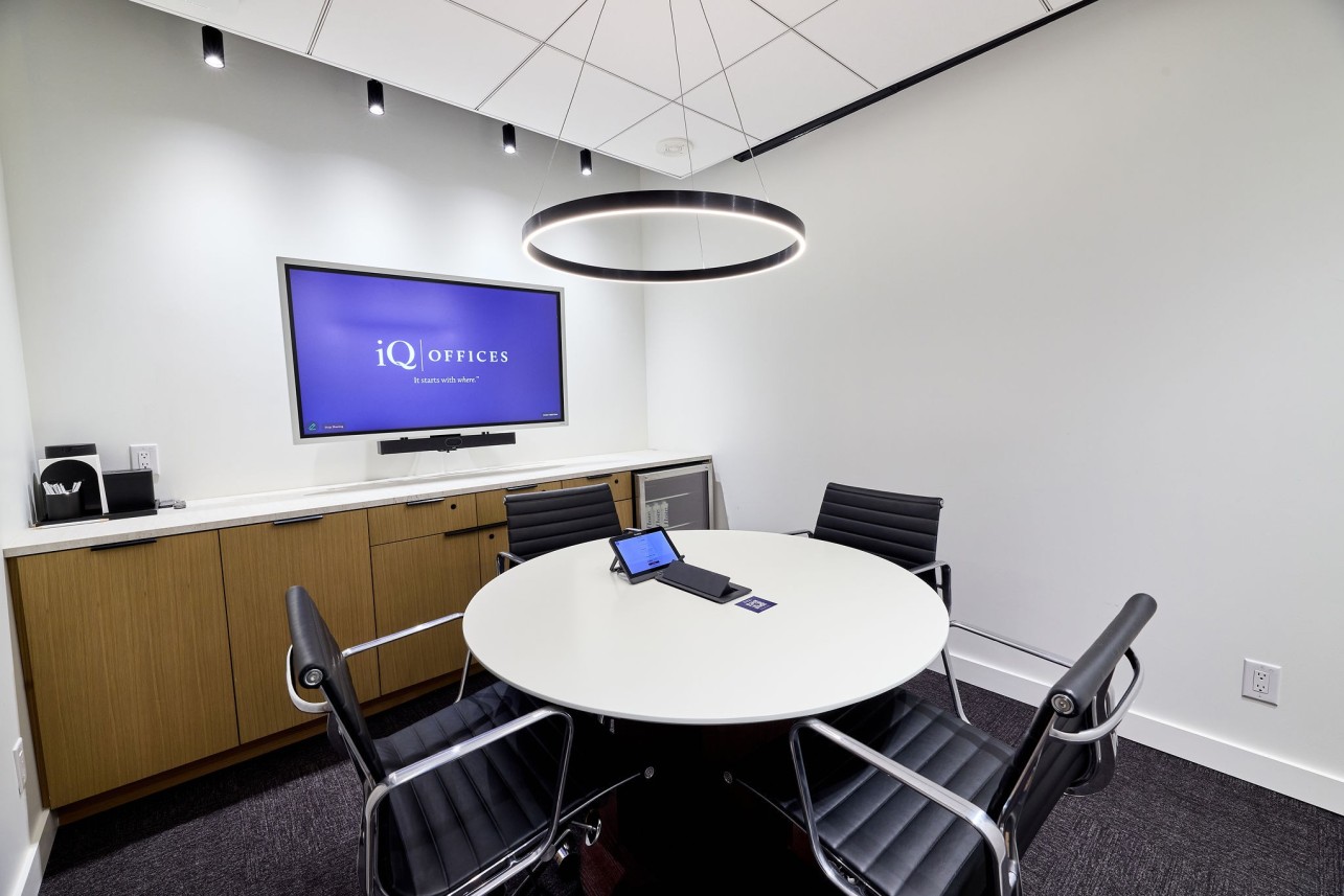 Designed to inspire focus and productivity, this Meeting Room seats up to 4 guests. Enjoy enterprise-grade Wi-Fi, ergonomic seating, whiteboards, video conferencing, refreshments, and support from our on-site team. Available Monday to Friday, 8:30 AM to 5:00 PM. Elevate your next meeting at iQ Offices.