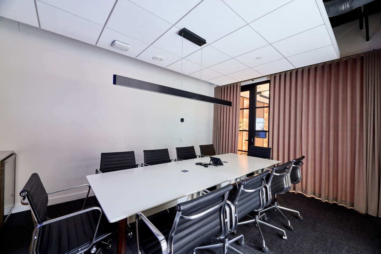 Designed to inspire focus and productivity, this Meeting Room seats up to 10 guests. Enjoy enterprise-grade Wi-Fi, ergonomic seating, whiteboards, video conferencing, refreshments, and support from our on-site team. Available Monday to Friday, 8:30 AM to 5:00 PM. Elevate your next meeting at iQ Offices.