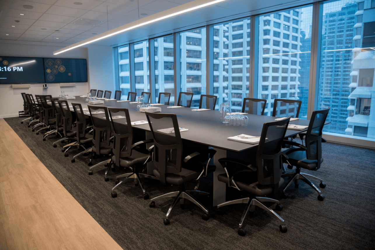 At the Lumi Experience we specialize in revolutionizing event experiences with our advanced hybrid technology and expertly designed spaces. While we also support meetings/events in our larger meeting room (100 capacity) such as Hybrid AGMs, Investor Days, Town Halls, etc. we also support Boardroom rentals that come with two breakout rooms. State-of-the-art boardroom (25 person capacity) comes with Teleconferencing setup (Teams, Zoom, Webex), plugs for charging devices in the table, and up to 3 monitors (two on wall and one mobile). We also can offer two versatile breakout rooms (5 and 15 person capacity) which comes with a Printer. All rooms have windows with a panoramic city view. We have onsite AV support staff and Customer Success Manager to help coordinate any catering requests.