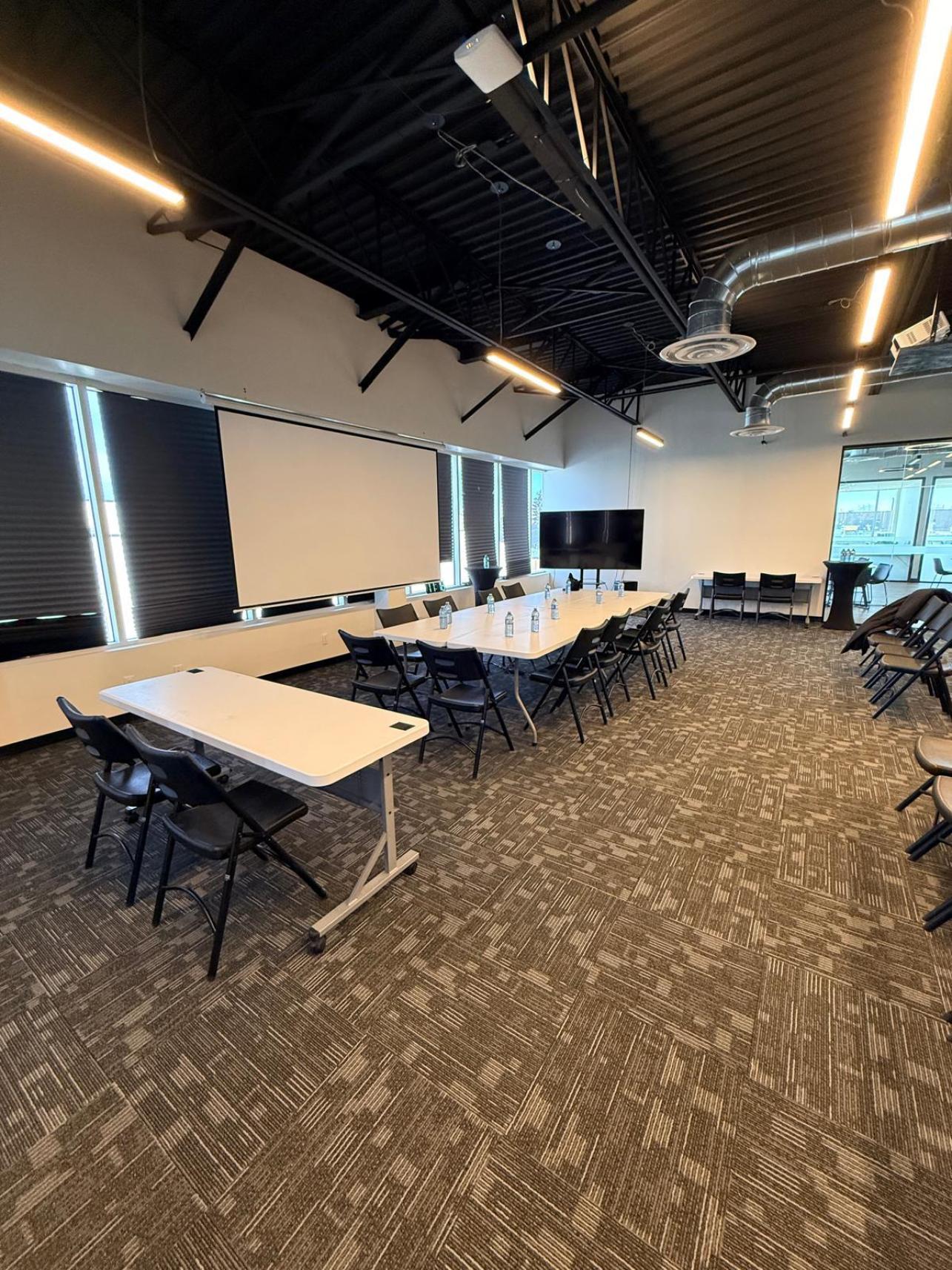 Modern, Spacious Event & Training Venue: Host your next event in a well-lit, state-of-the-art training & meeting space designed for flexibility, comfort, & impact. With accommodations for up to 100 guests, this versatile venue is ideal for both professional & social gatherings. Perfect For: Client appreciation events Awards ceremonies Educational seminars & training sessions Large team meetings CPR certification classes Fantasy football draft parties Networking events & workshops Fully Equipped & Event-Ready Your rental includes high-quality, built-in equipment to ensure a seamless experience: Professional audio soundboard 2 microphones 2 speakers Projection screen Large-screen TV display Flexible Layout Options The space easily adapts to your event needs: Row-style seating for presentations Multi-table group settings for workshops Open-floor layout for mingling & receptions Formal presentation, hands-on training or a celebratory gathering, this venue offers the modern amenities.