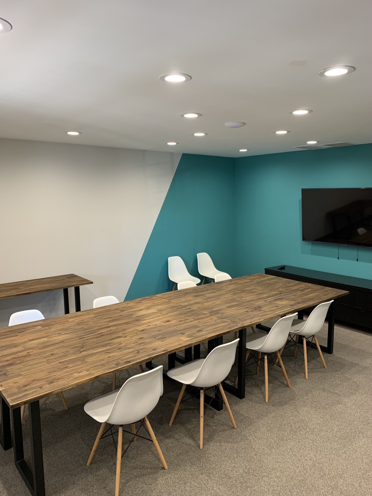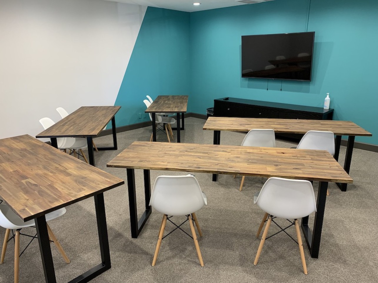 This spacious room has modular furniture and can be configured for U-shaped, boardroom, or classroom style seating. Very private. There is a large 65-inch flat screen TV and white board. Located in the heart of beautiful downtown Oakville. We are steps from all the best cafes and restaurants in our city and couple of blocks from the shores of Lake Ontario. Suitable for up to 16 people. Tea, coffee, and filtered water included.